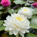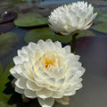 The White Mallika Hardy Water Lily is a breathtaking display of grace and refinement. With its large, double-petaled white blooms and glossy green pads, this variety brings timeless elegance to any pond. Its blossoms rise slightly above the water, glowing softly in sunlight and reflecting purity, calm, and beauty.